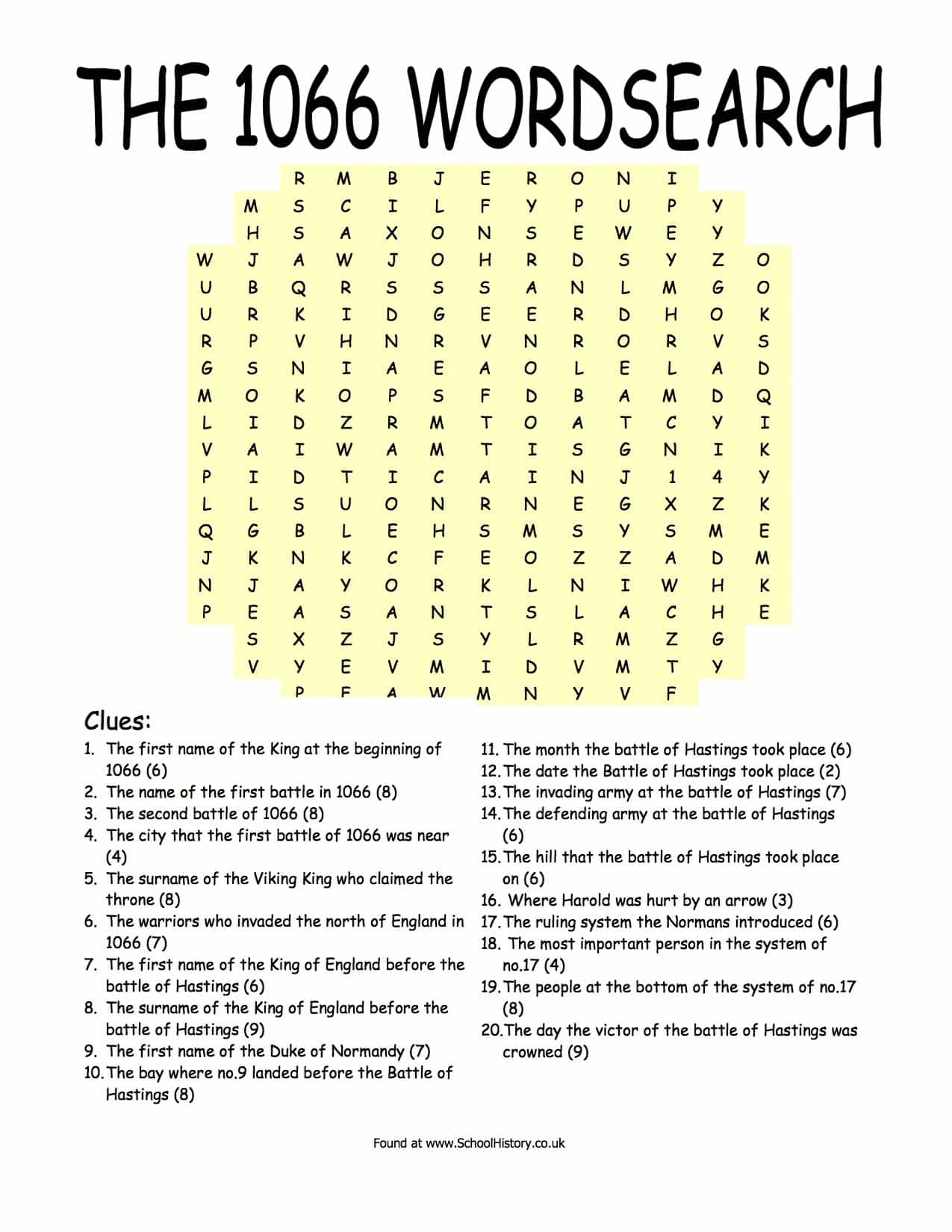 1066 Wordsearch Year 7 Free Downloadable PDF