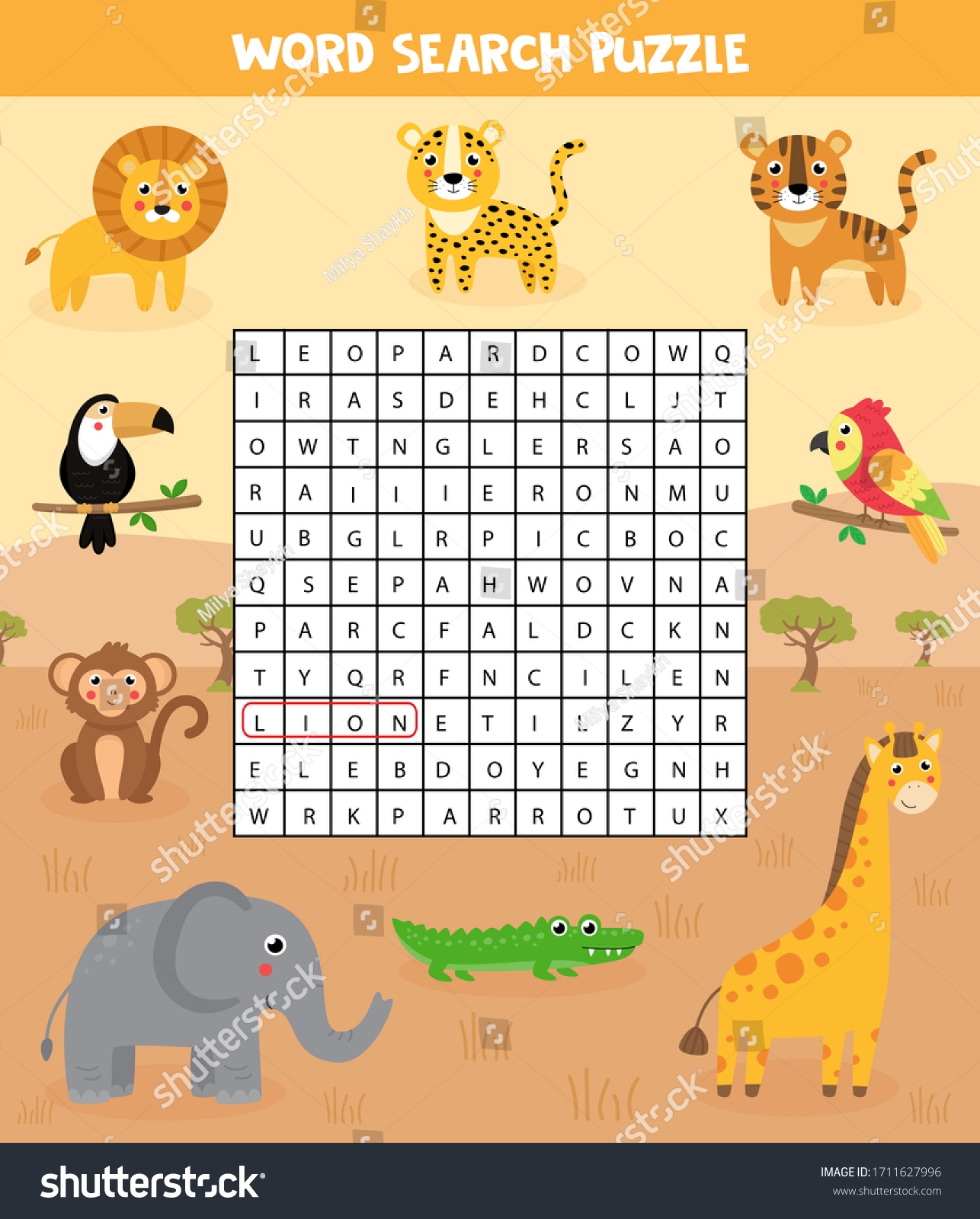 1 Hundred Safari Animal Word Search Royalty Free Images Stock