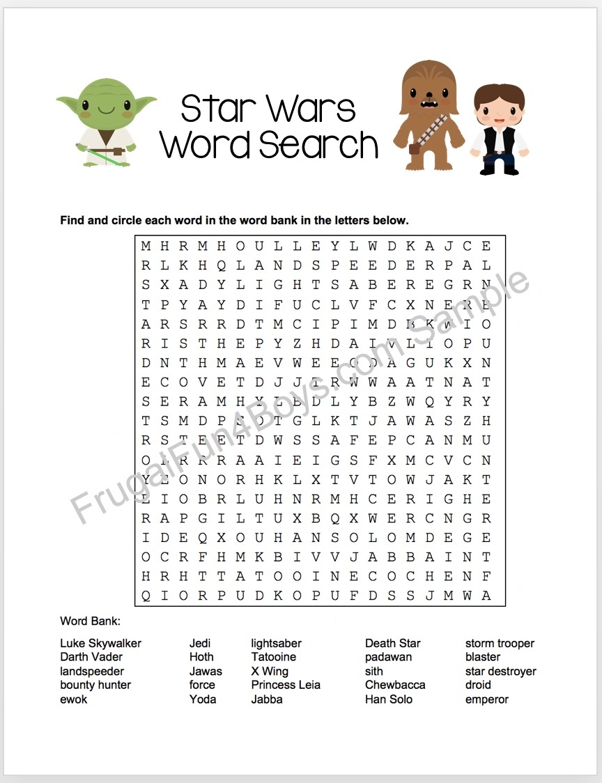 Printable Star Wars Word Search Frugal Fun For Boys And Girls