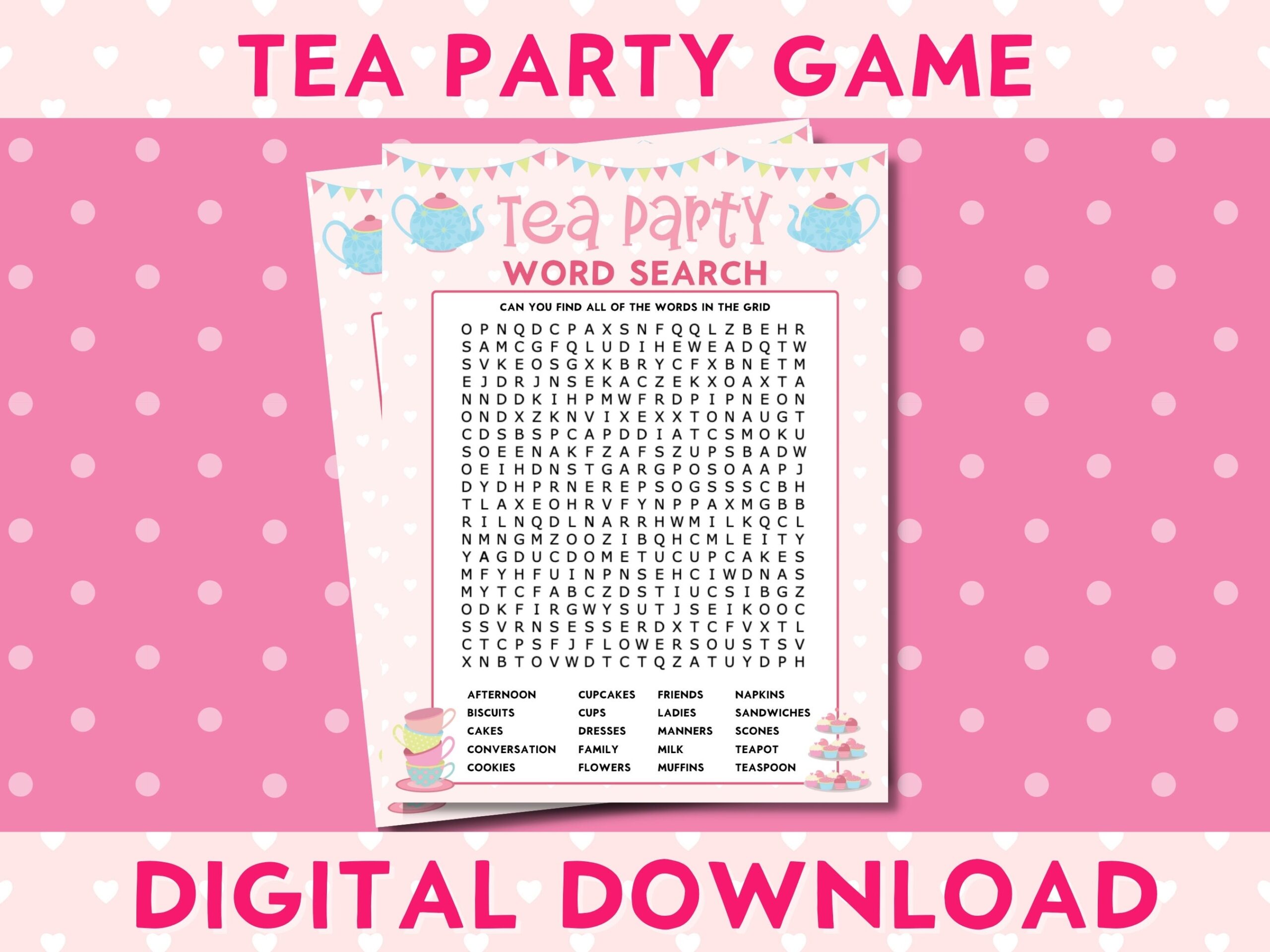 Printable Tea Party Games Afternoon Tea Party Tea Party Word Search High Tea Activity Instant Download Ladies Tea Party TPF1 Etsy