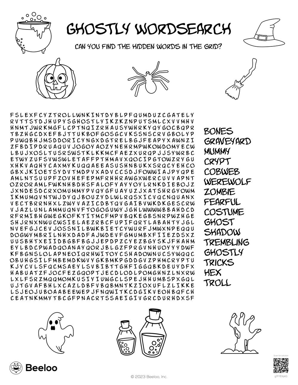 Ghostly Wordsearch Beeloo Printable Crafts And Activities For Kids