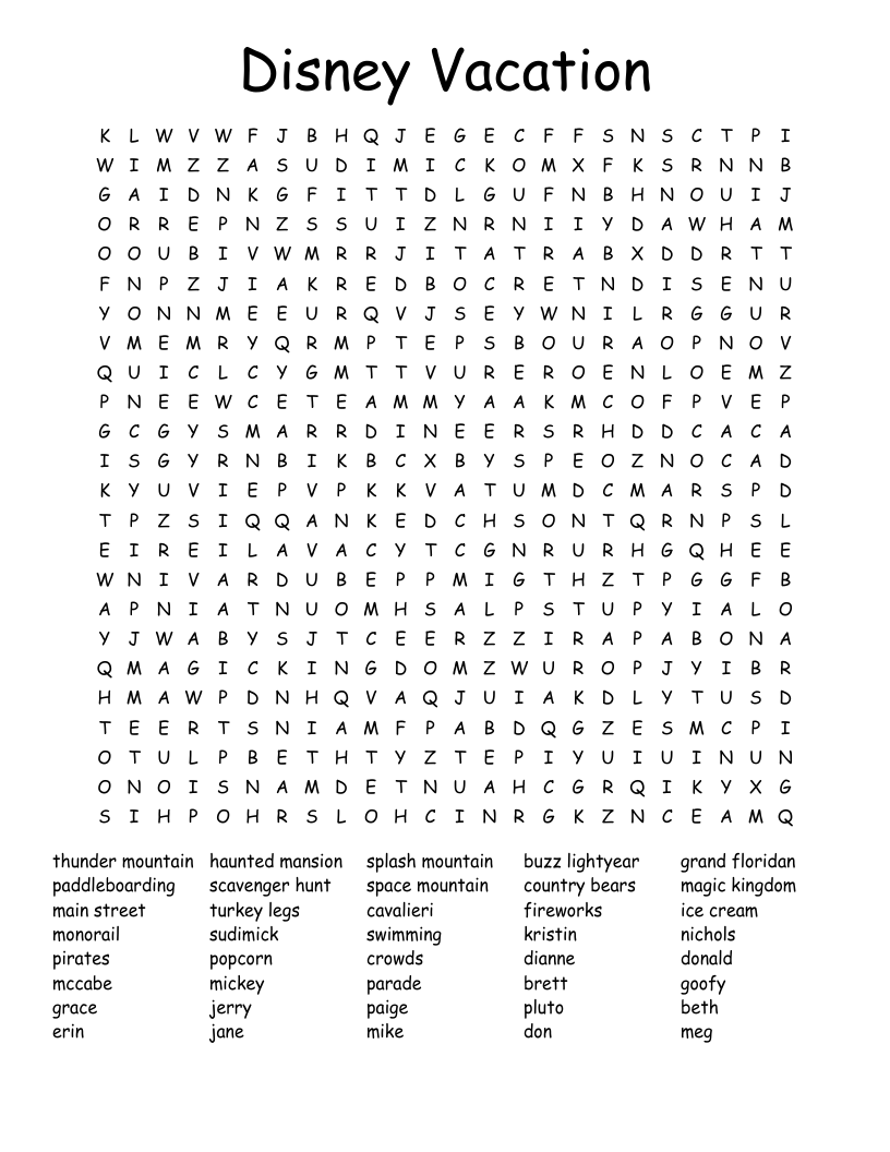 Disney Vacation Word Search WordMint
