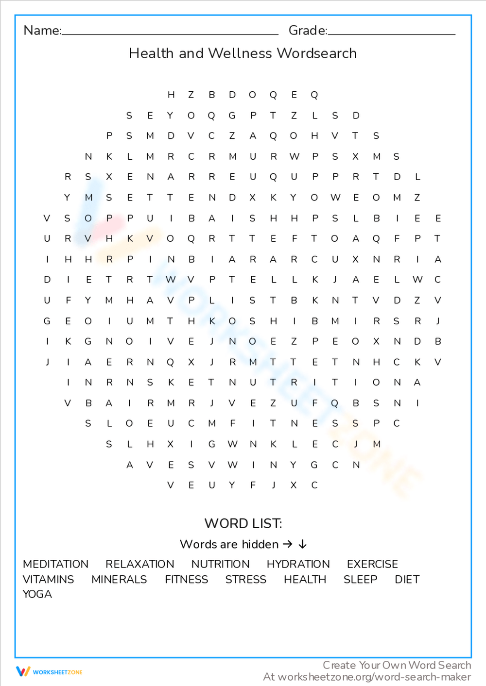 Health And Wellness Word Search WordMint