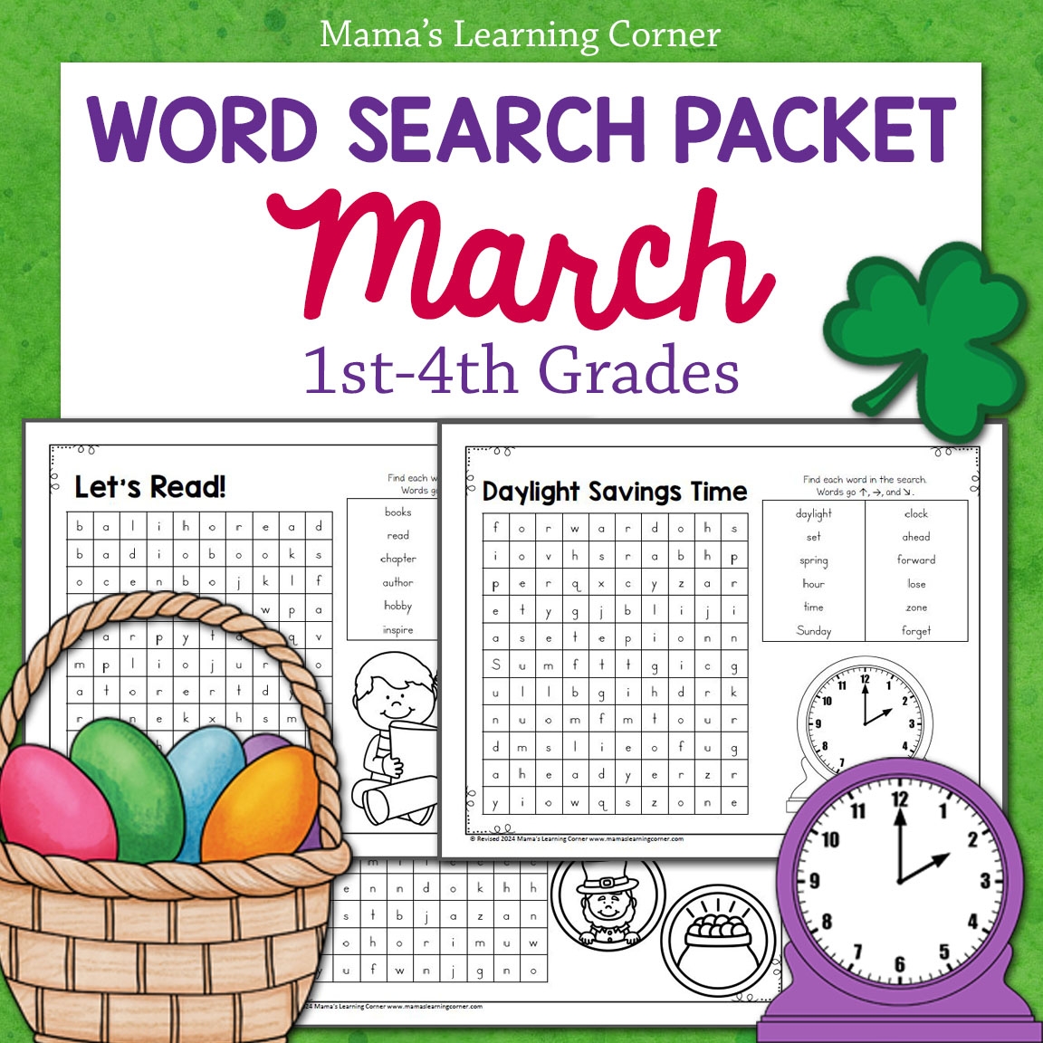 March Word Search Packet St Patrick s Day Daylight Savings Time Easter Mamas Learning Corner
