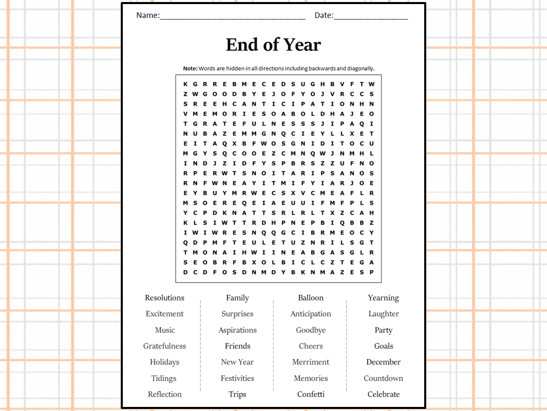 End Of Year Word Search Puzzle Worksheet Activity Teaching Resources